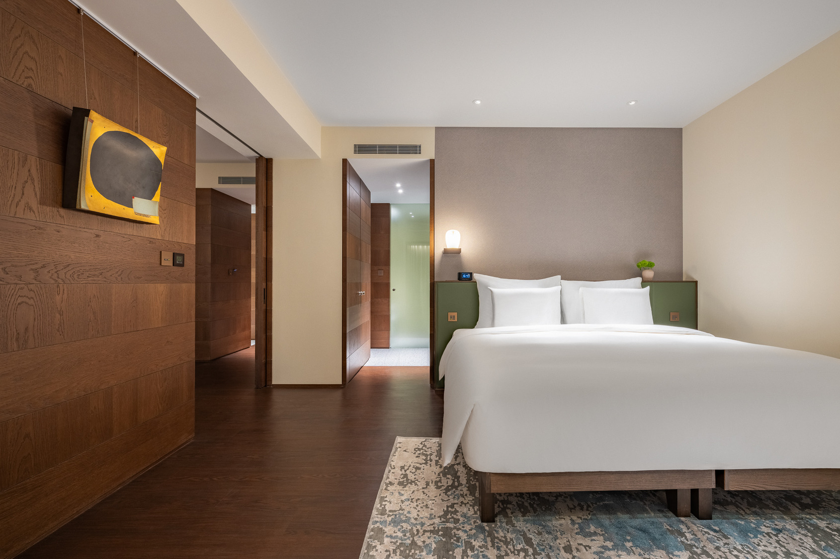 高層階に位置する静かな空間、精巧なカスケードデザインでリビングとベッドルームを実用的かつ美しくつなぎ、仕事や休憩に最適な空間を提供しています。専用の小型家電、独立したシャワールームなど、細部にまでこだわった上質な体験をお楽しみください。